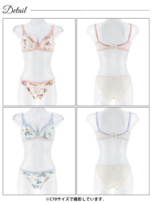 フロレゾンローズレース育乳脇高ブラジャー&サイド紐バック透けフルバックショーツ