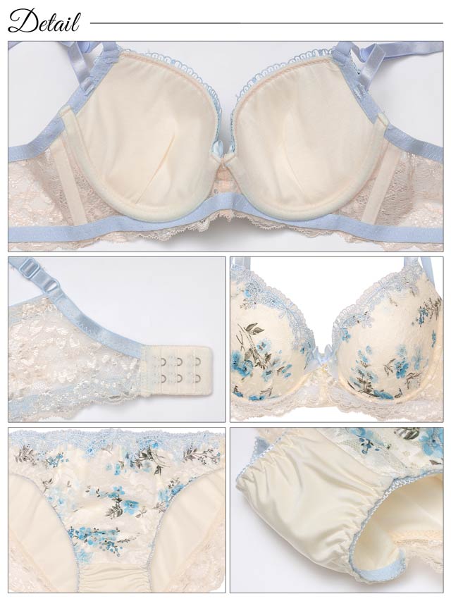フェミニンレースブルーミング育乳脇高ブラジャー&フルバックショーツ[激売れ]