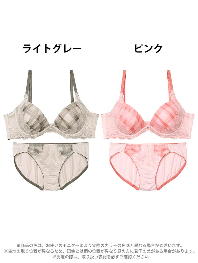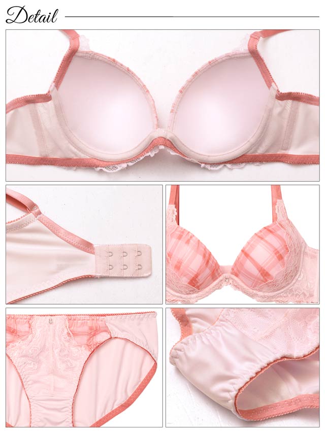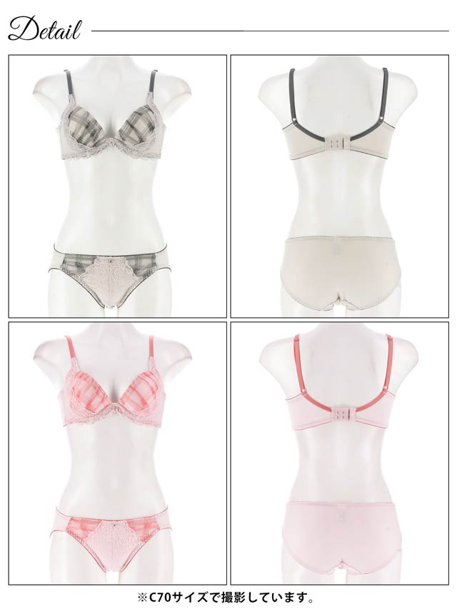 クラシカルチェックレース育乳脇高ブラジャー&フルバックショーツ[激売れ]