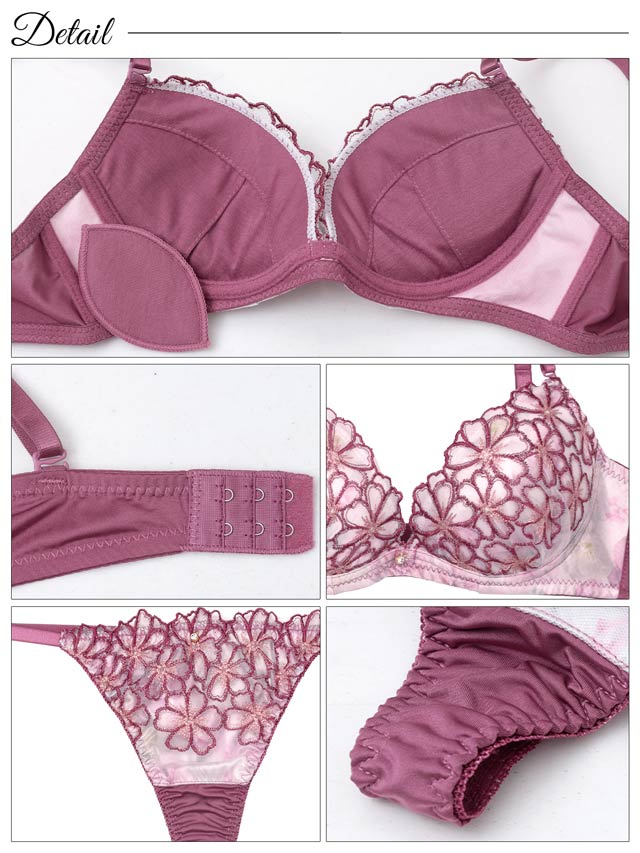 12/2再販!ダスティブルームエンブロイダリー育乳脇高ブラジャー&バック透けフルバックショーツ[激売れ]