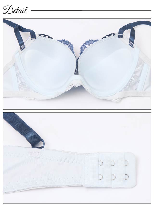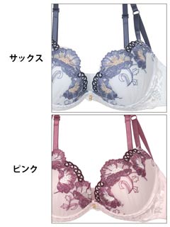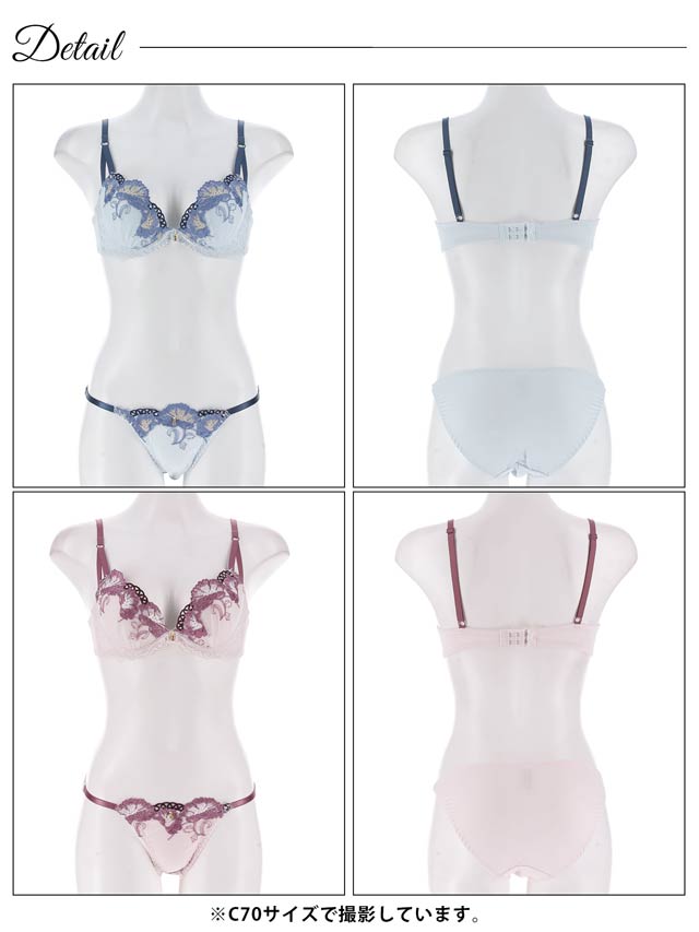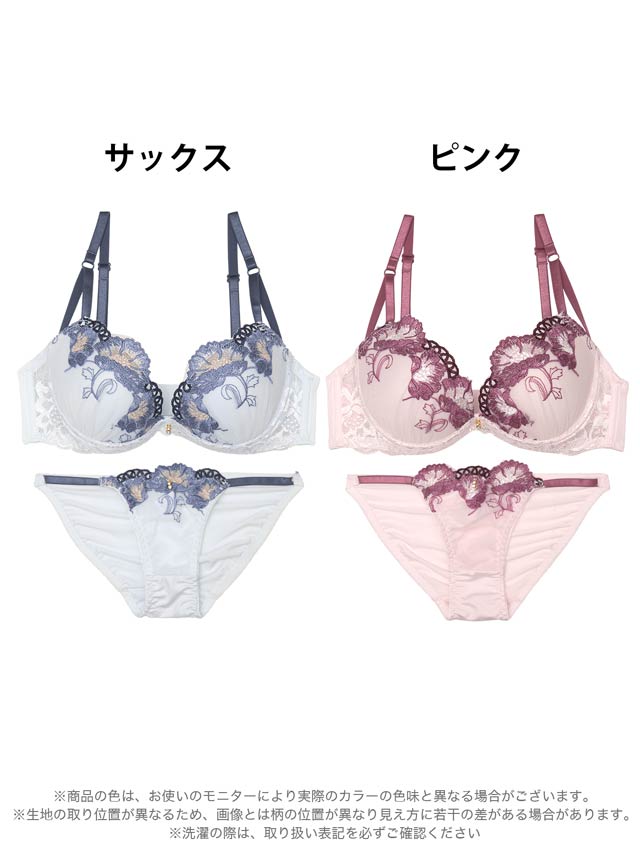ダスティブルームエンブロイダリー育乳脇高ブラジャー&バック透けフルバックショーツ