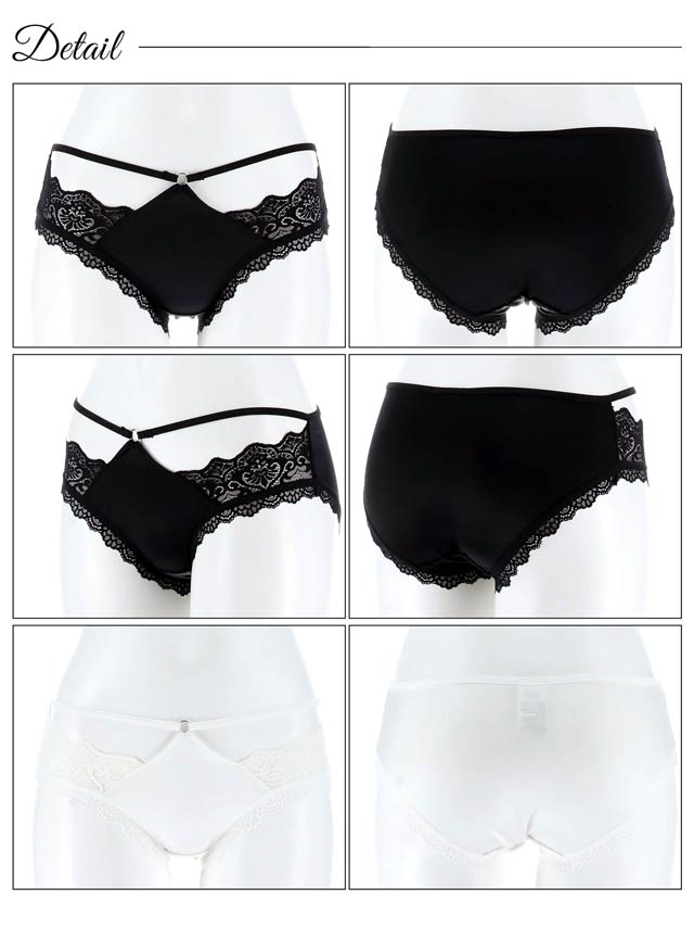 オールレースカットストリング育乳脇高ブラジャー&バック透けフルバックショーツ