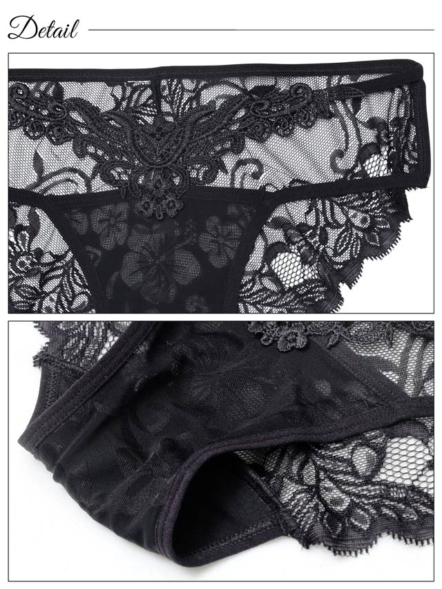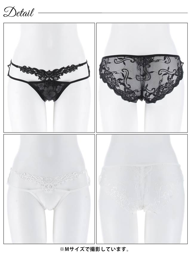 オールレースカットストリング育乳脇高ブラジャー&バック透けフルバックショーツ