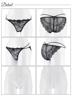 1/17再販!オールレースカットストリング育乳脇高ブラジャー&バック透けフルバックショーツ[激売れ][週替]