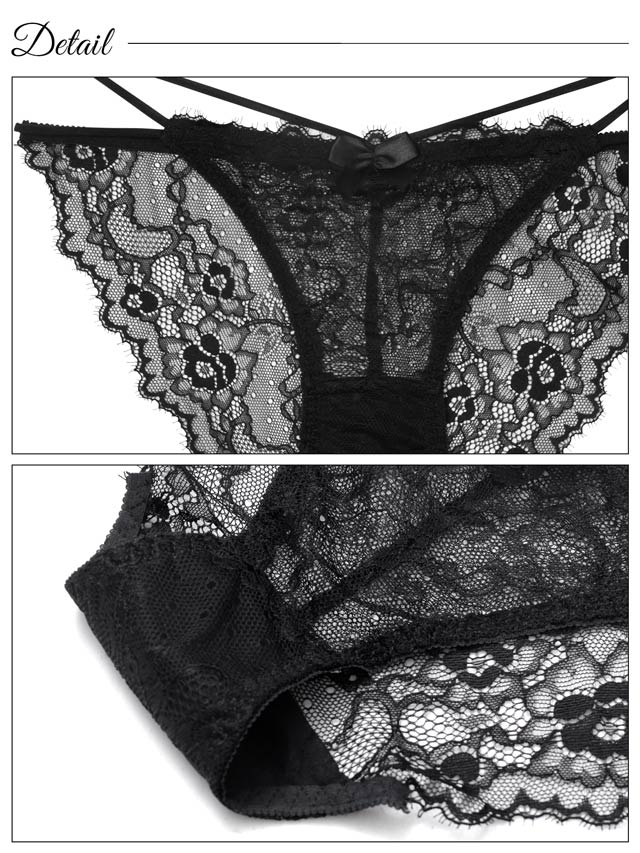 オールレースカットストリング育乳脇高ブラジャー&バック透けフルバックショーツ