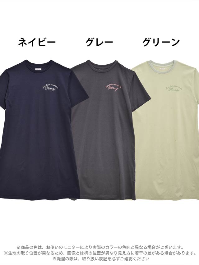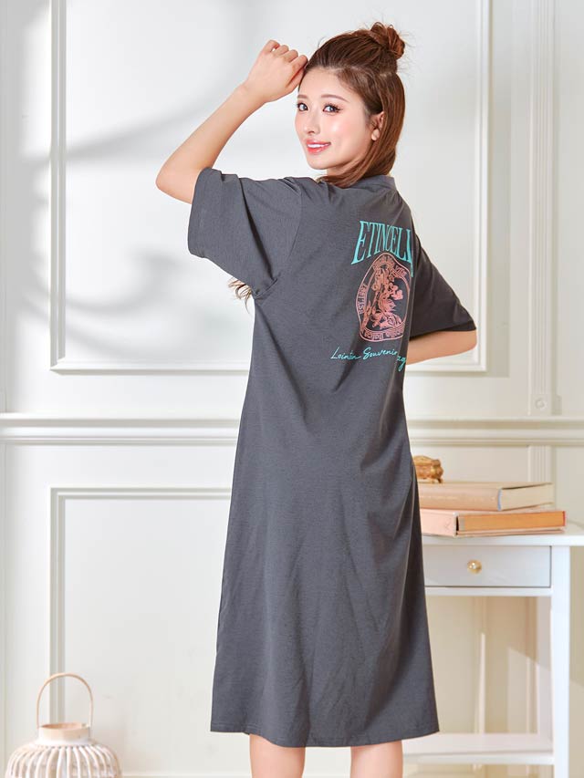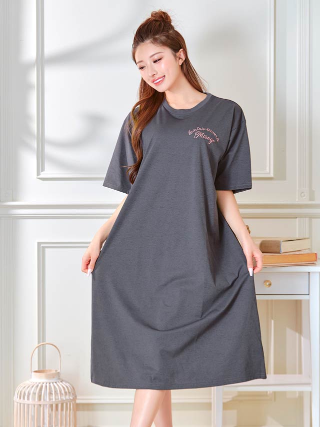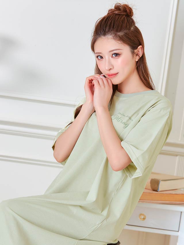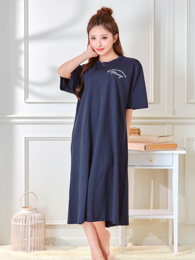 シンプルサイドスリットロゴ半袖ワンピースルームウェア