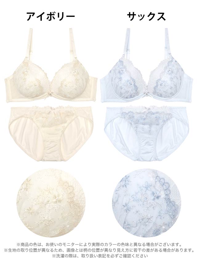 ダスティブルームエンブロイダリー育乳脇高ブラジャー&バック透けフルバックショーツ