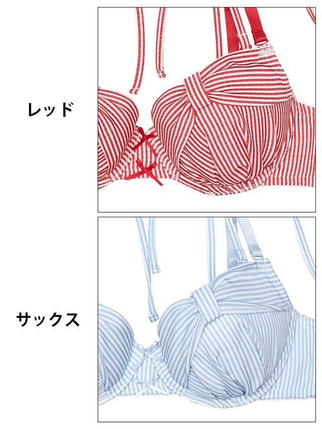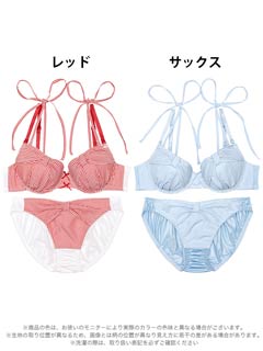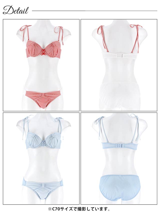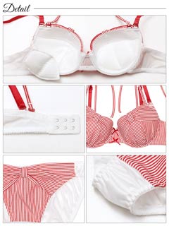 ストライプリボンチャーミングブラジャー&フルバックショーツ[大人気]