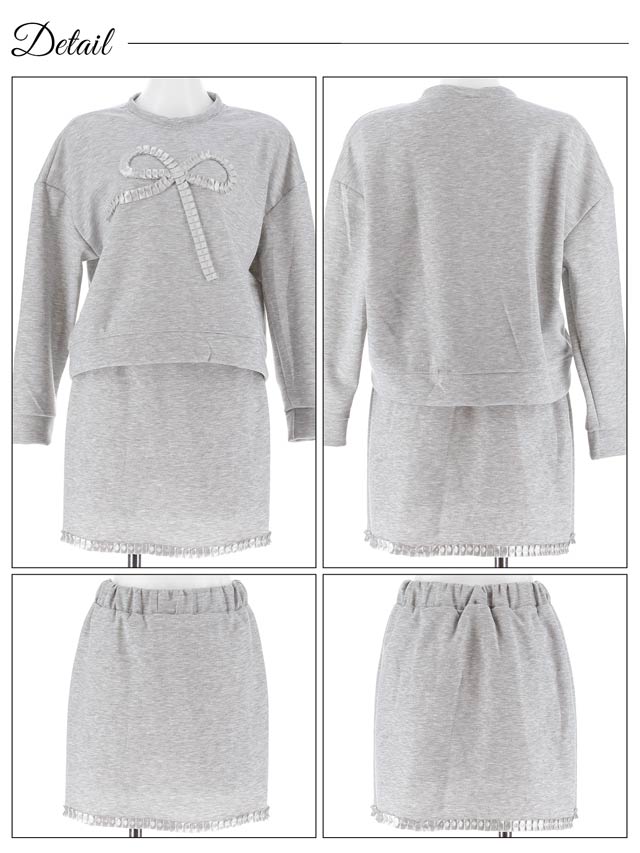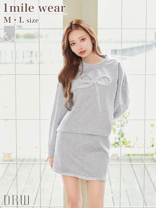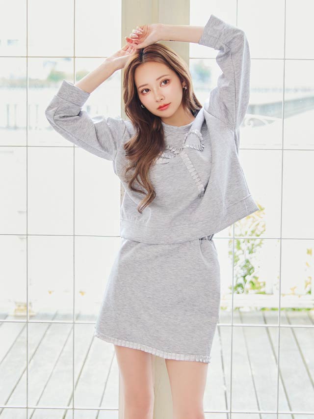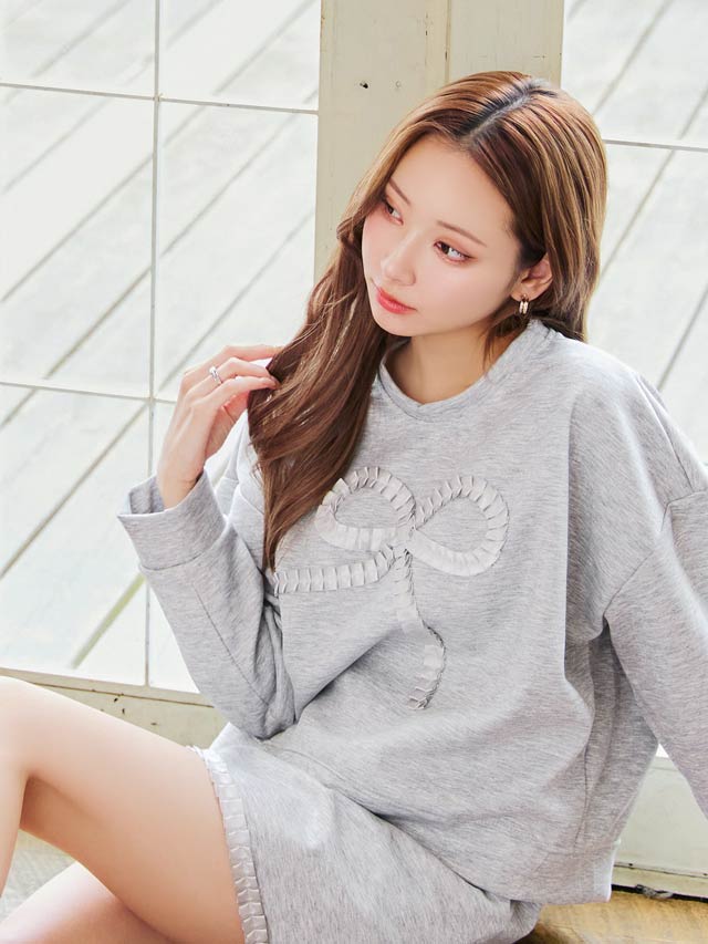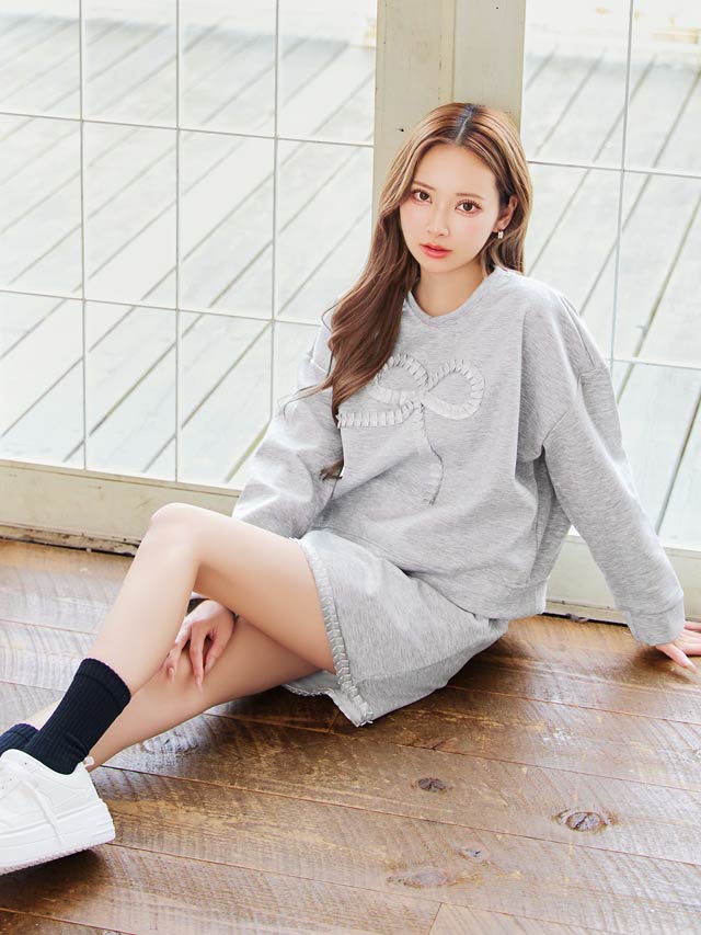 タックリボンスウェット長袖&ミニスカートルームウェア[週替]