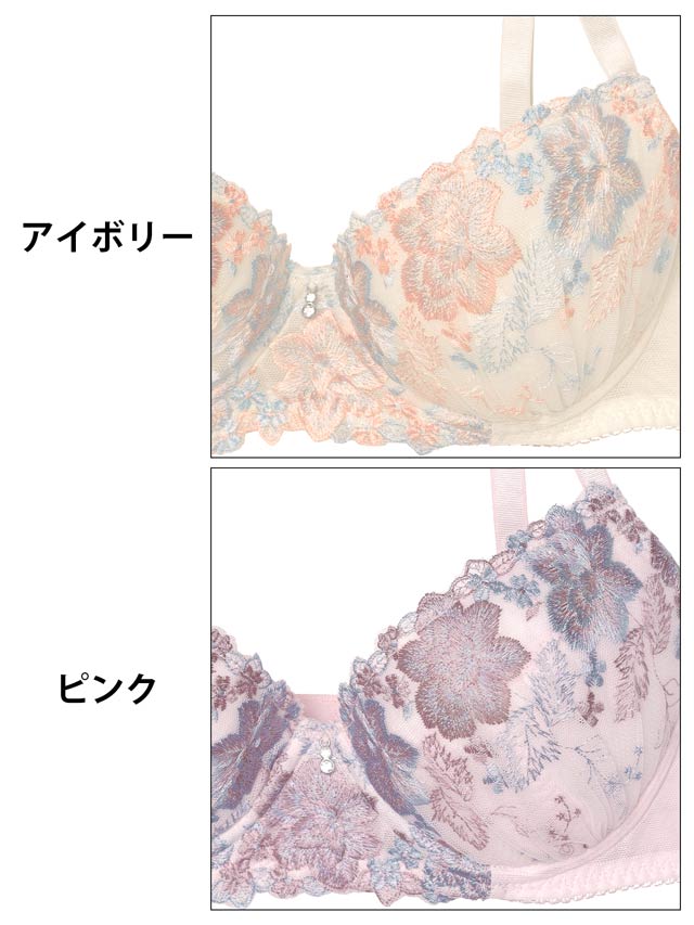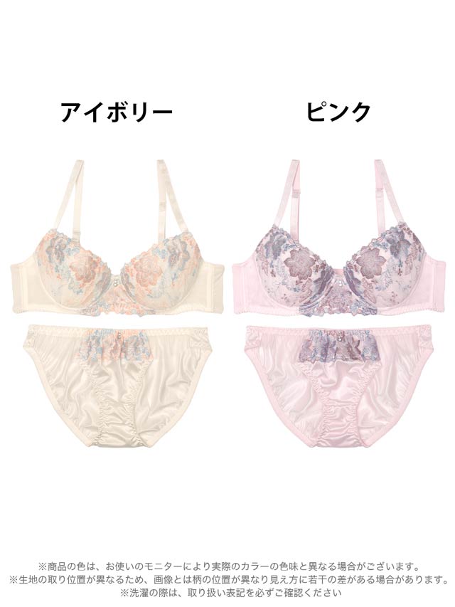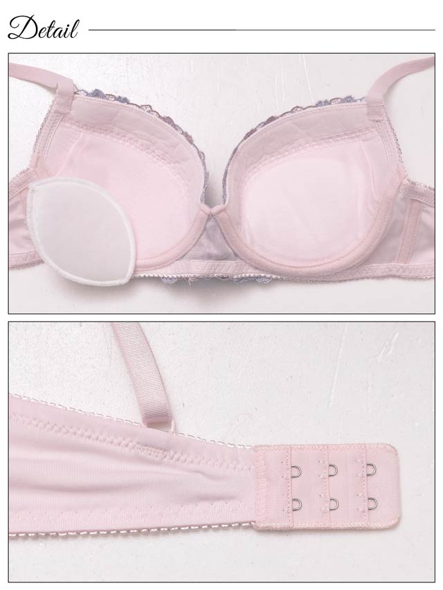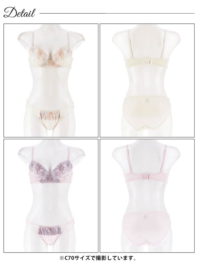 ダスティブルームエンブロイダリー育乳脇高ブラジャー&バック透けフルバックショーツ