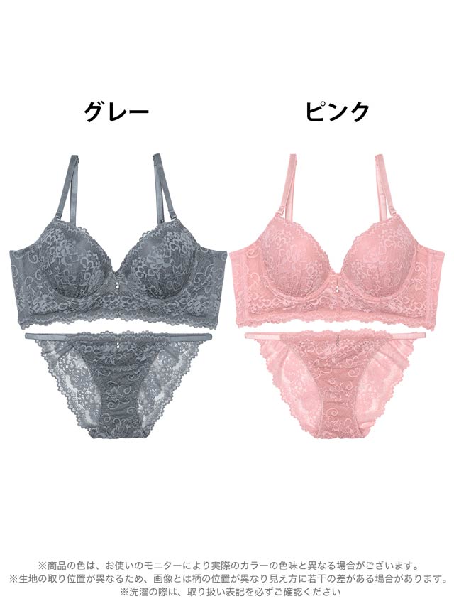 フロレゾンローズレース育乳脇高ブラジャー&サイド紐バック透けフルバックショーツ