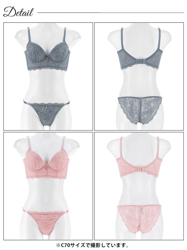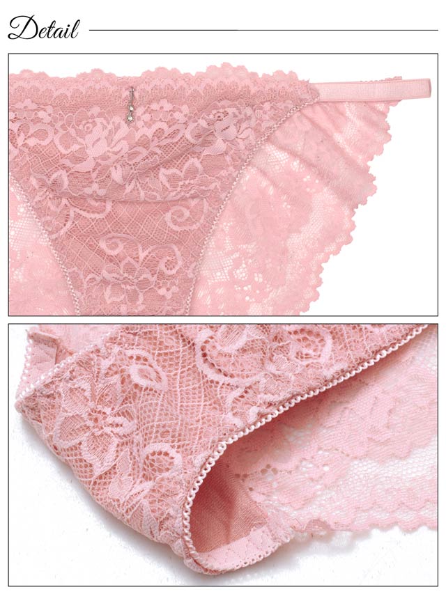 オールレースカットストリング育乳脇高ブラジャー&バック透けフルバックショーツ