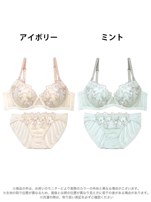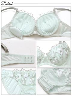ダスティブルームエンブロイダリー育乳脇高ブラジャー&バック透けフルバックショーツ