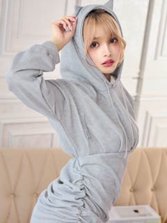 フロントジップアシンメトリーワンピースルームウェア[週替]