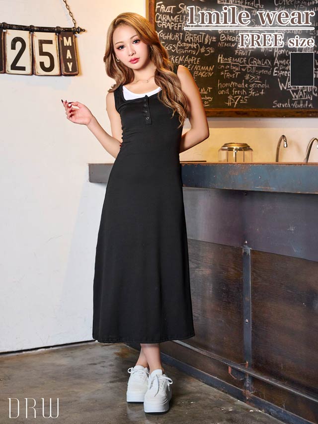 ノースリーブバイカラーレイヤード風ロングワンピース