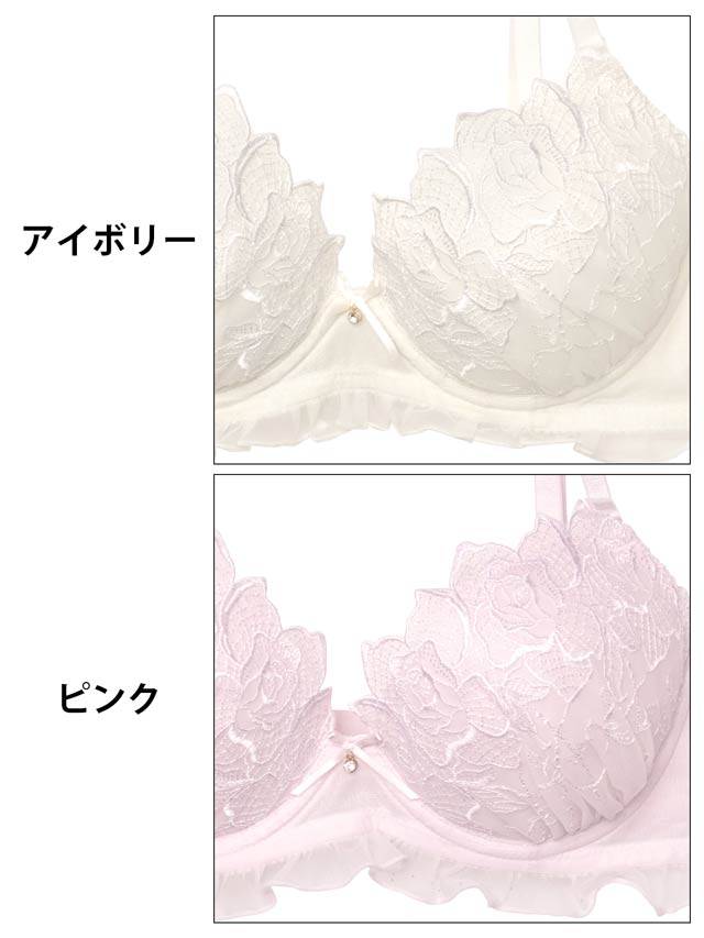 ダスティブルームエンブロイダリー育乳脇高ブラジャー&バック透けフルバックショーツ