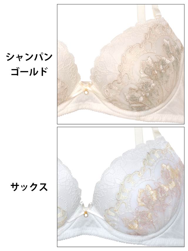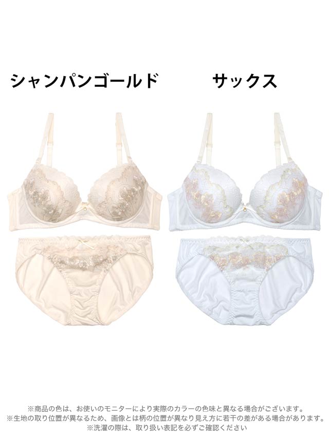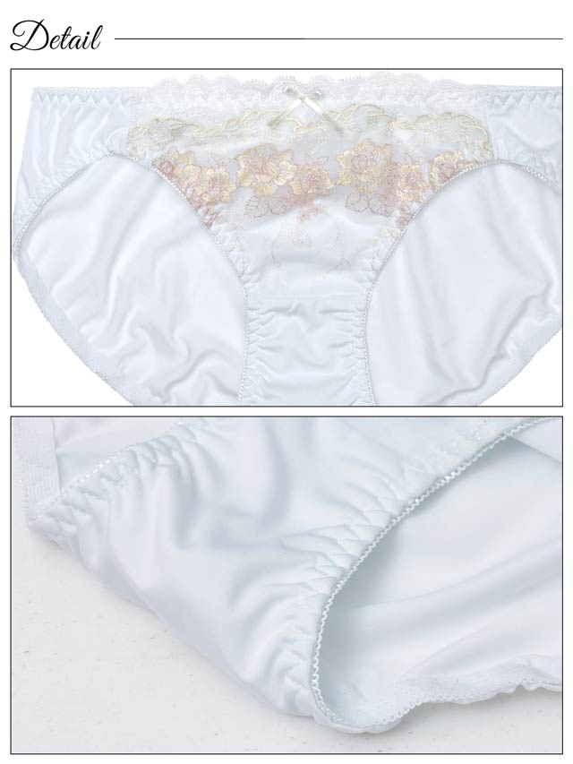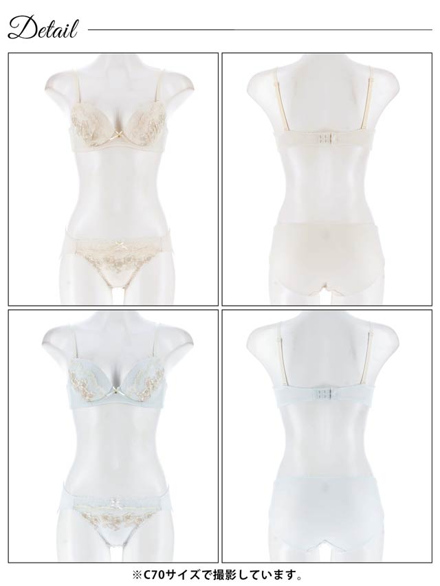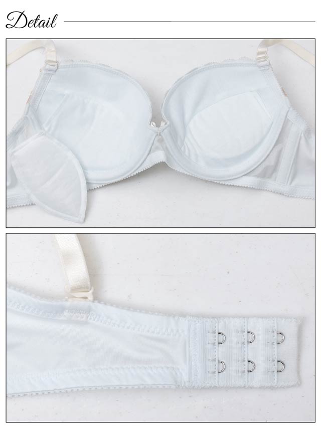 ダスティブルームエンブロイダリー育乳脇高ブラジャー&バック透けフルバックショーツ