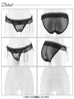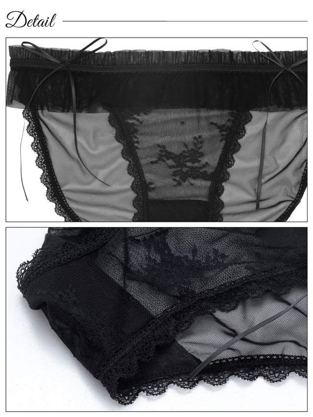 オールレースカットストリング育乳脇高ブラジャー&バック透けフルバックショーツ