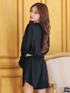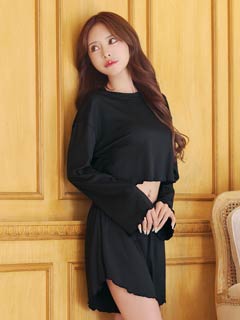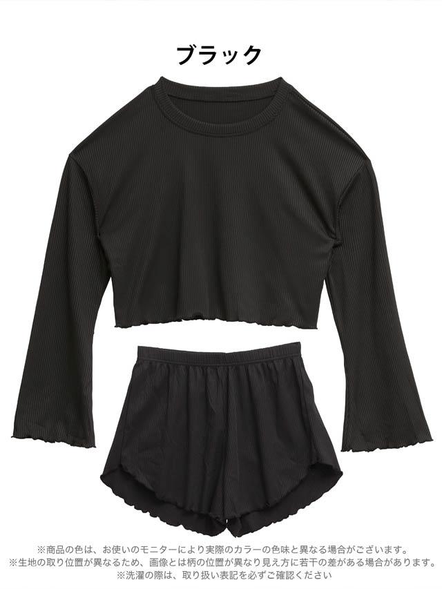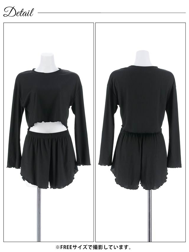 フレアリブクロップド丈トップス&ショートパンツルームウェア