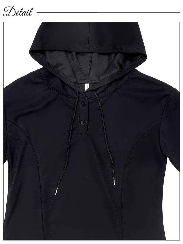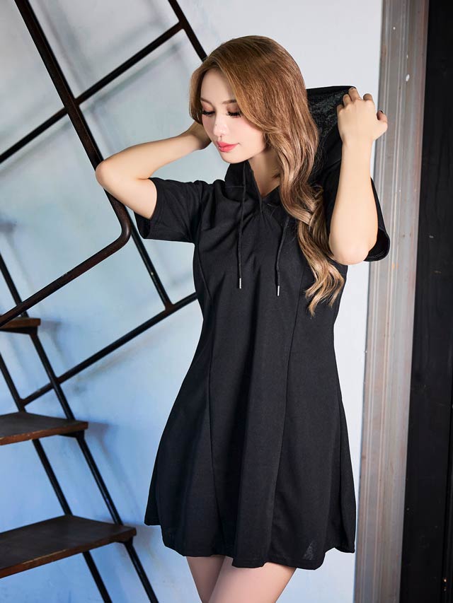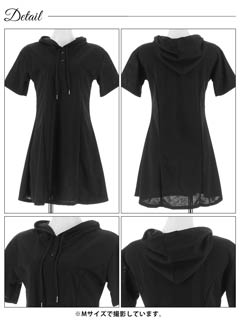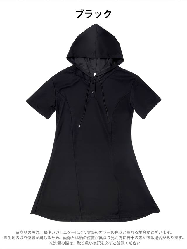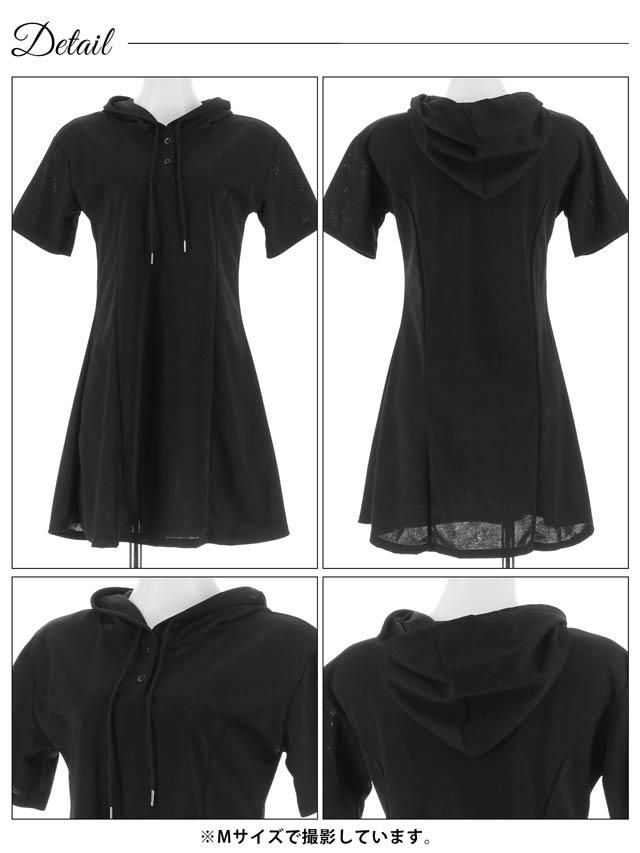 フロントボタン半袖パーカーワンピース[Xmasセール]