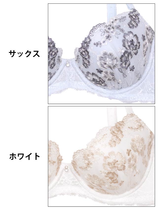 ダスティブルームエンブロイダリー育乳脇高ブラジャー&バック透けフルバックショーツ