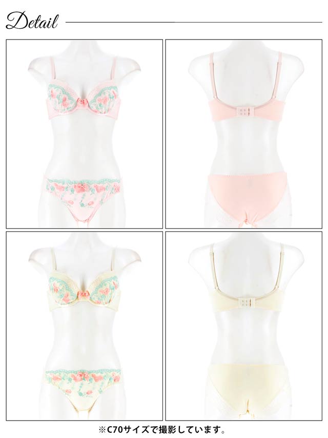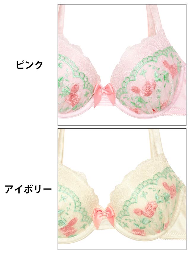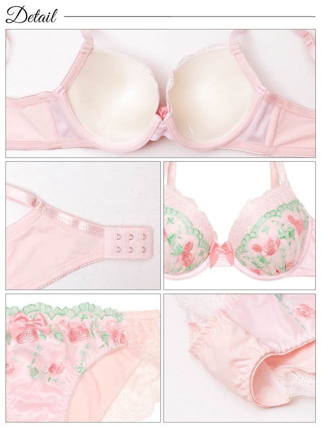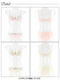 ダスティブルームエンブロイダリー育乳脇高ブラジャー&バック透けフルバックショーツ