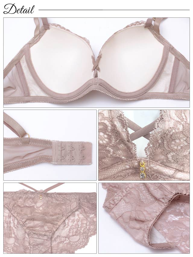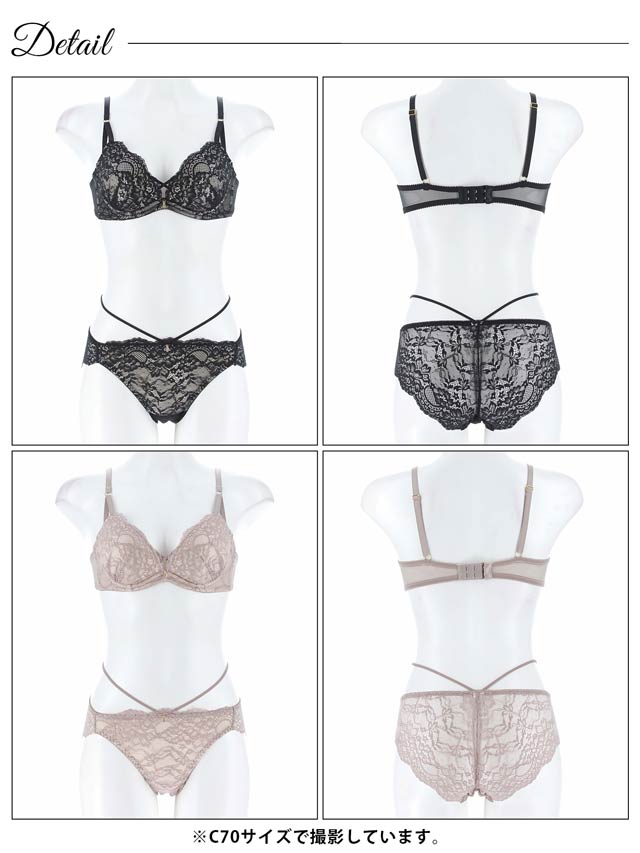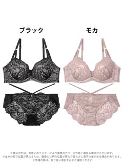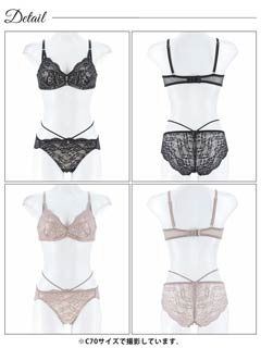 オールレースカットストリング育乳脇高ブラジャー&バック透けフルバックショーツ