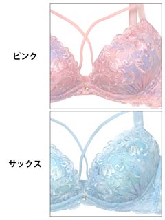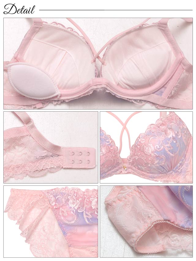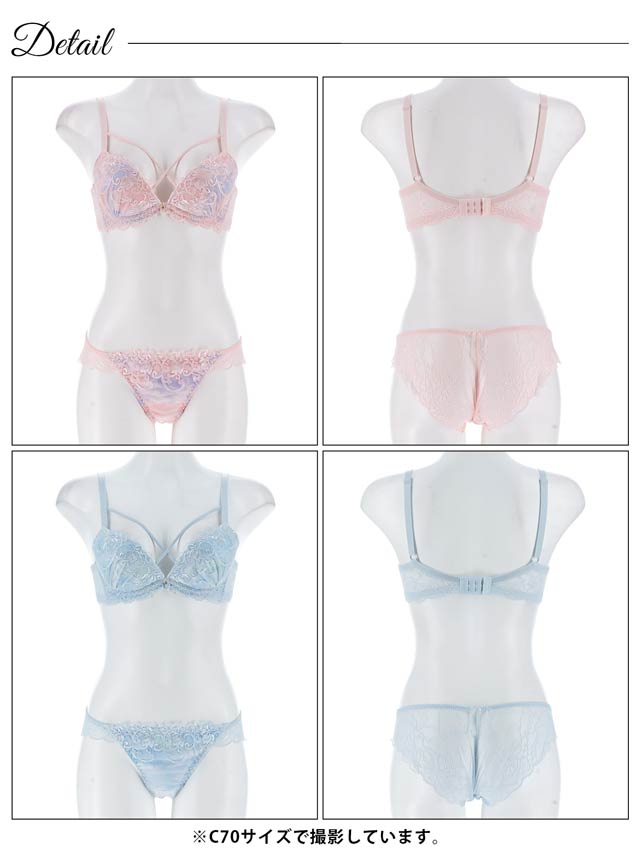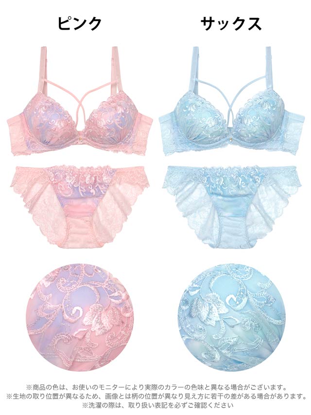ダスティブルームエンブロイダリー育乳脇高ブラジャー&バック透けフルバックショーツ