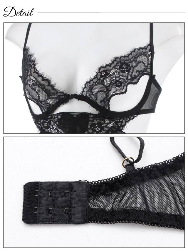 オールレースカットストリング育乳脇高ブラジャー&バック透けフルバックショーツ