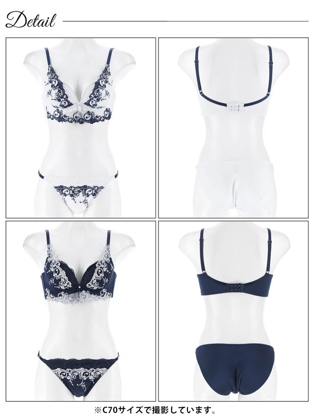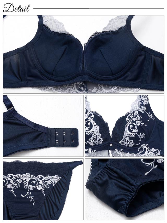 ダスティブルームエンブロイダリー育乳脇高ブラジャー&バック透けフルバックショーツ