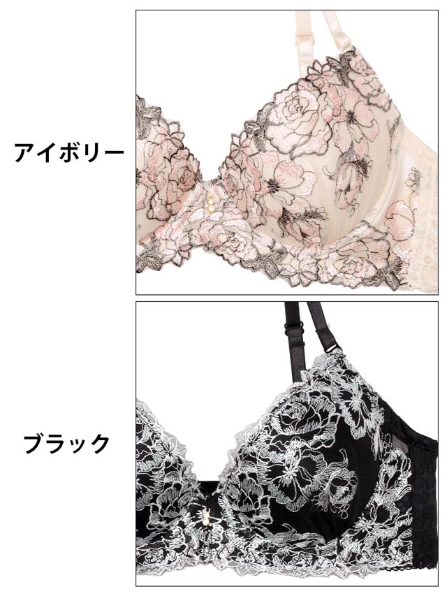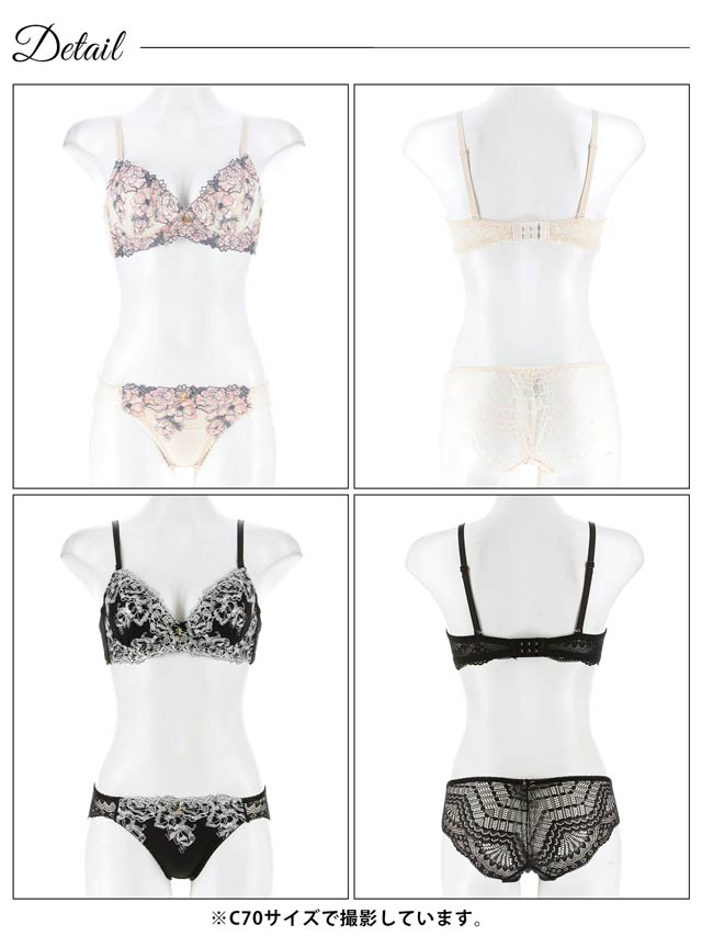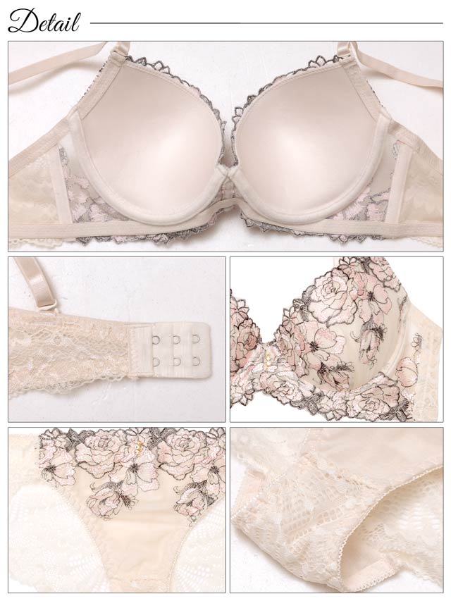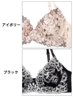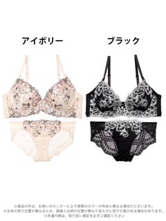 ダスティブルームエンブロイダリー育乳脇高ブラジャー&バック透けフルバックショーツ