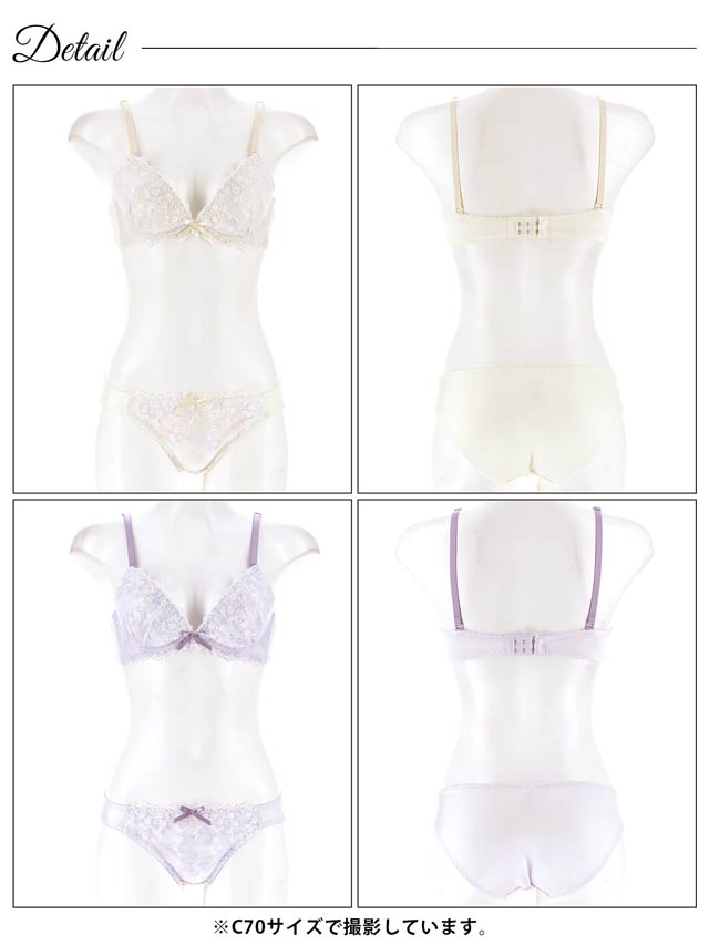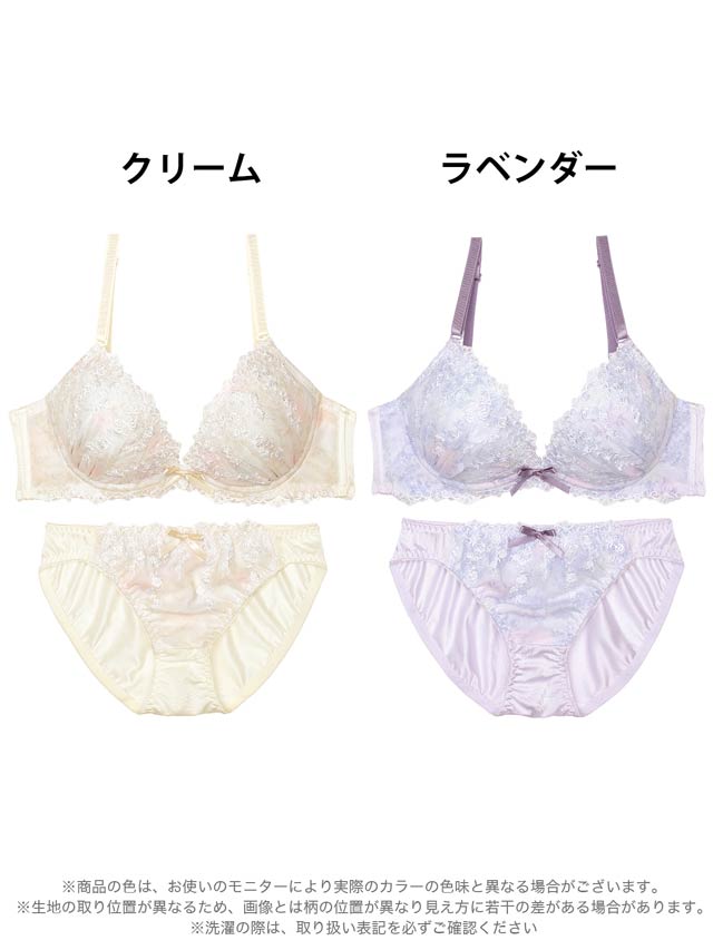 ダスティブルームエンブロイダリー育乳脇高ブラジャー&バック透けフルバックショーツ