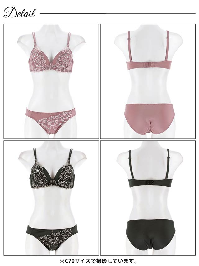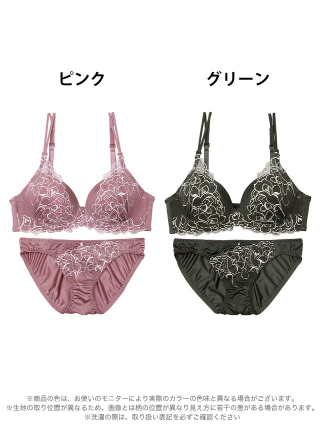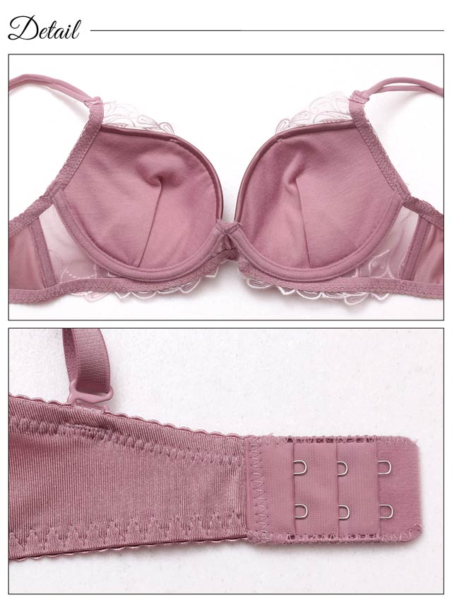 ダスティブルームエンブロイダリー育乳脇高ブラジャー&バック透けフルバックショーツ