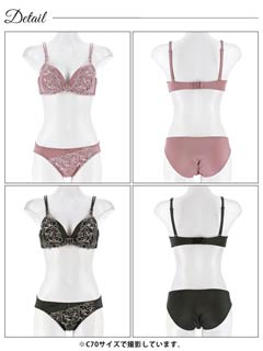 フロレゾンローズレース育乳脇高ブラジャー&サイド紐バック透けフルバックショーツ