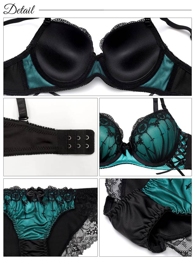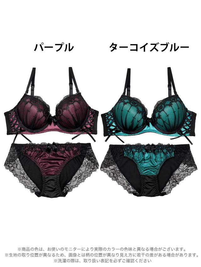 ダスティブルームエンブロイダリー育乳脇高ブラジャー&バック透けフルバックショーツ