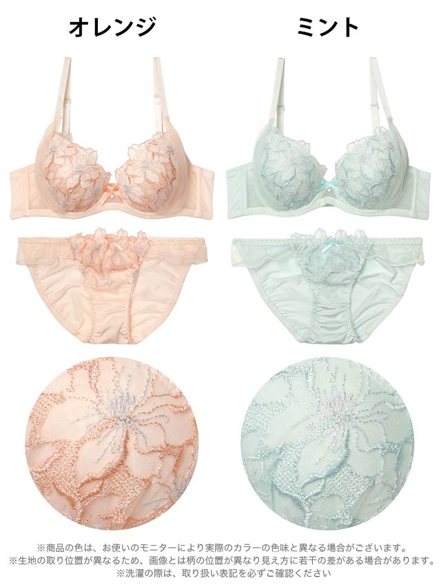 ダスティブルームエンブロイダリー育乳脇高ブラジャー&バック透けフルバックショーツ