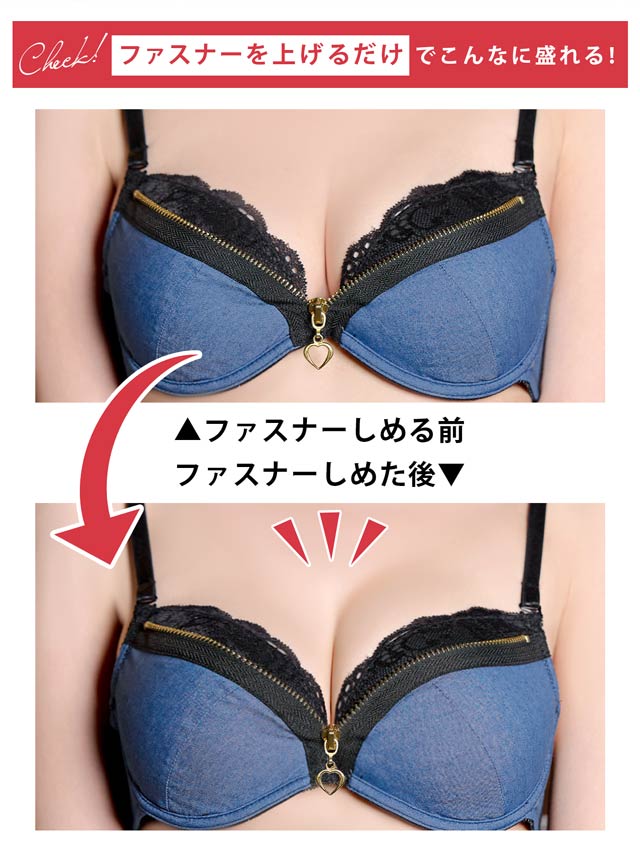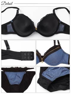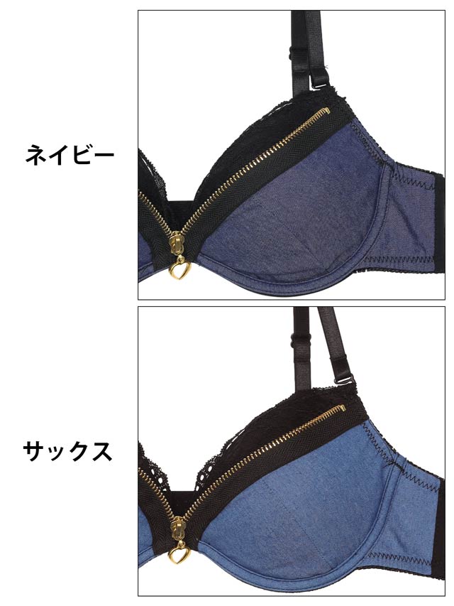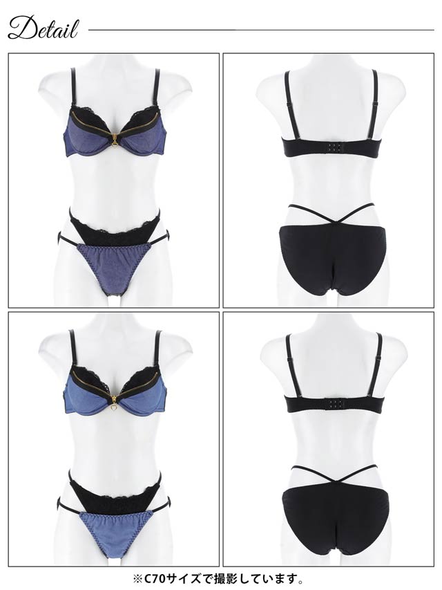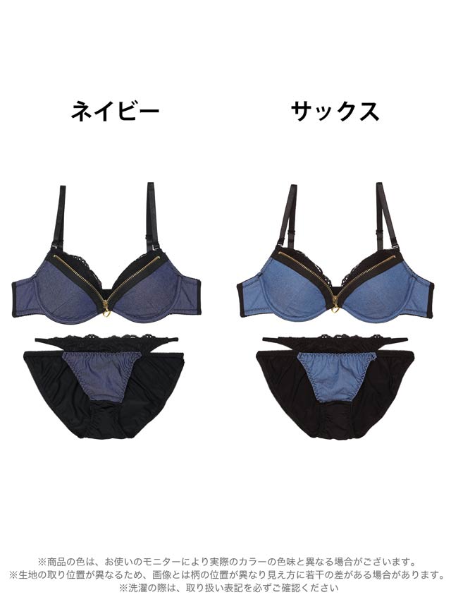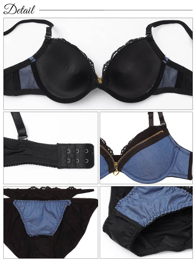 レイヤードファスナーデニムブラジャー&フルバックショーツ[大人気]