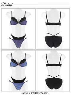 オールレースカットストリング育乳脇高ブラジャー&バック透けフルバックショーツ