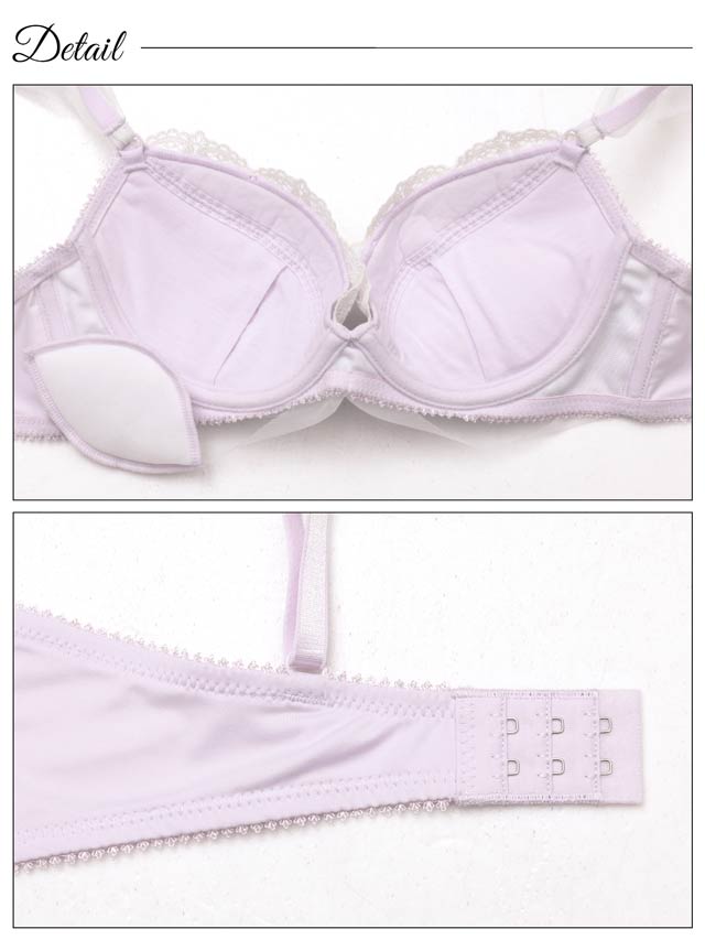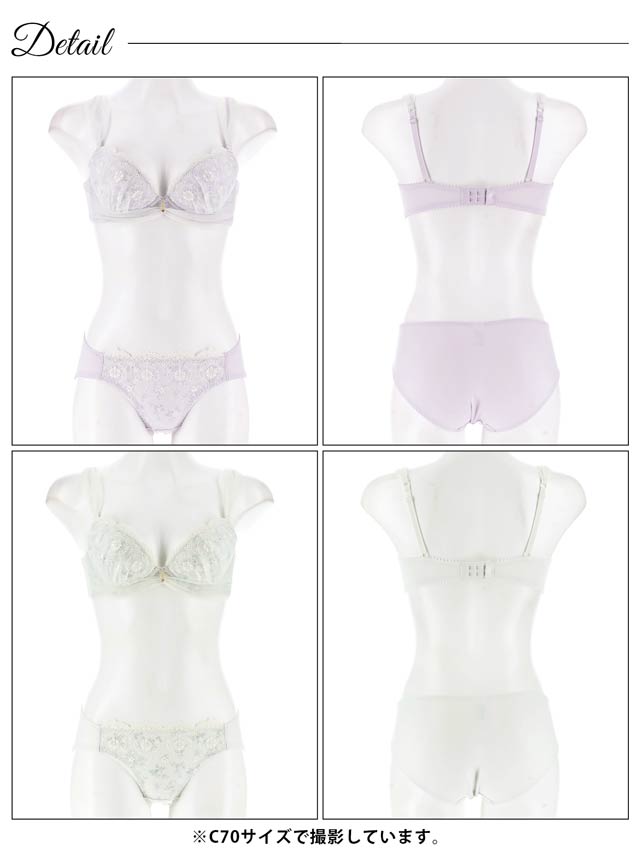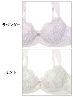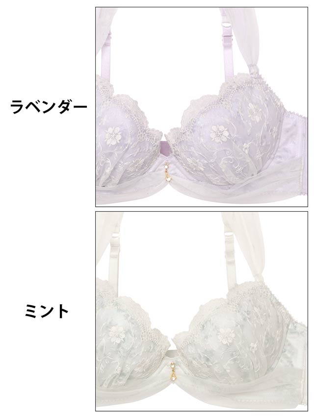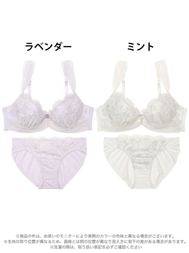 ダスティブルームエンブロイダリー育乳脇高ブラジャー&バック透けフルバックショーツ