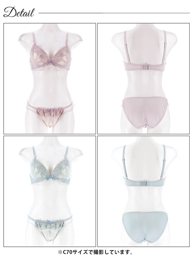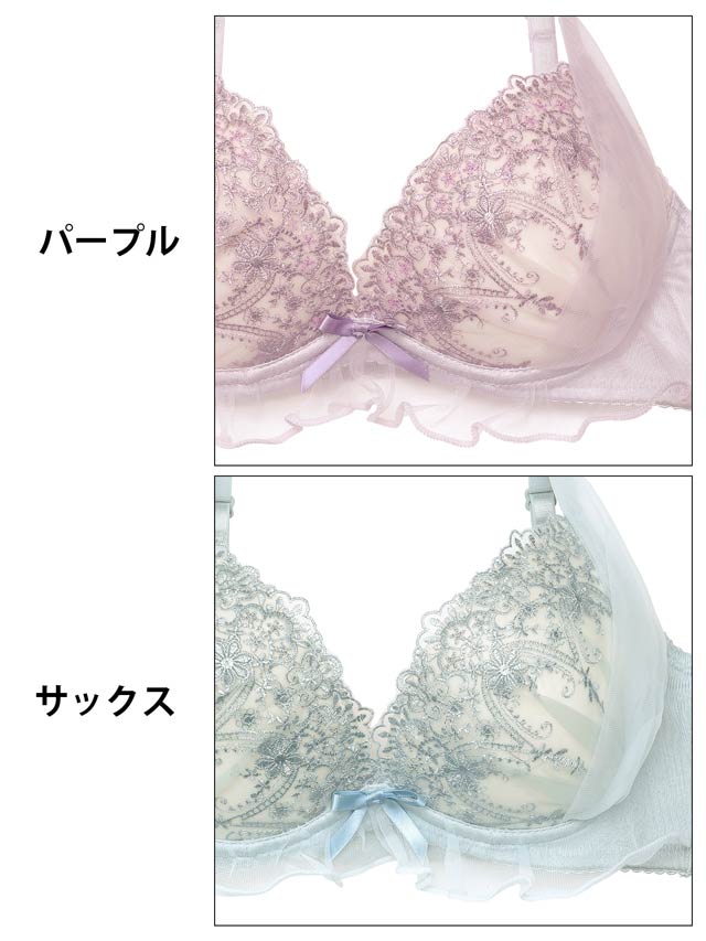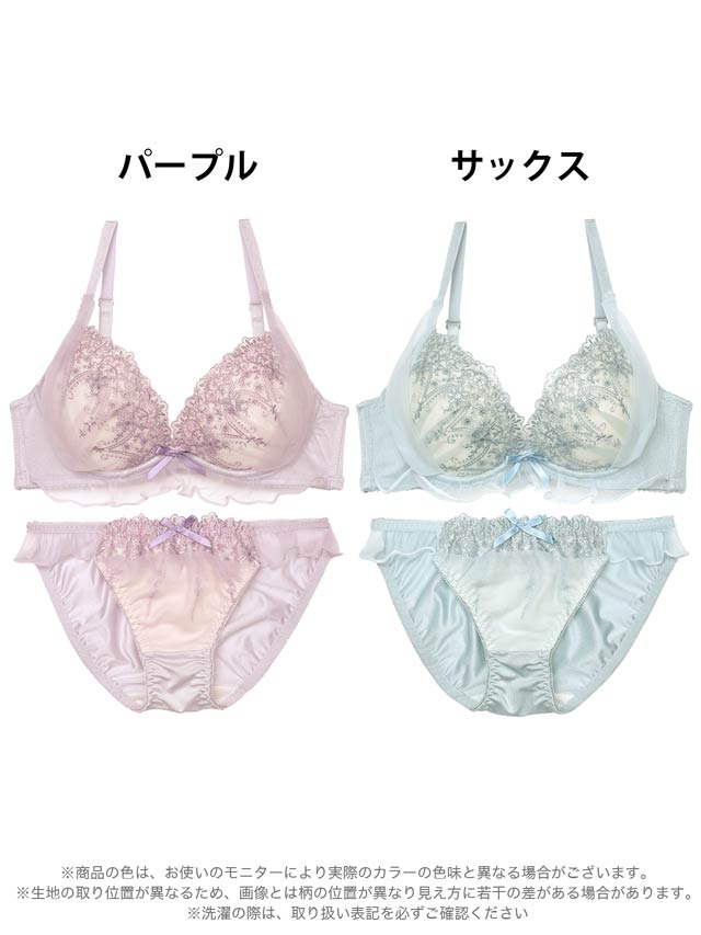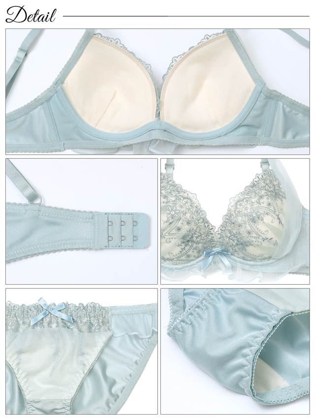 ダスティブルームエンブロイダリー育乳脇高ブラジャー&バック透けフルバックショーツ