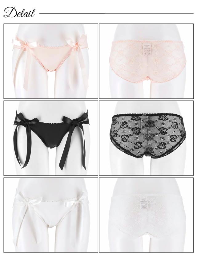ロマンティックリボンレースバック透けフルバックショーツ単品
