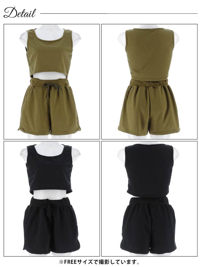 ワンカラースウェットタンクトップ&ショートパンツルームウェア