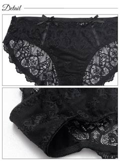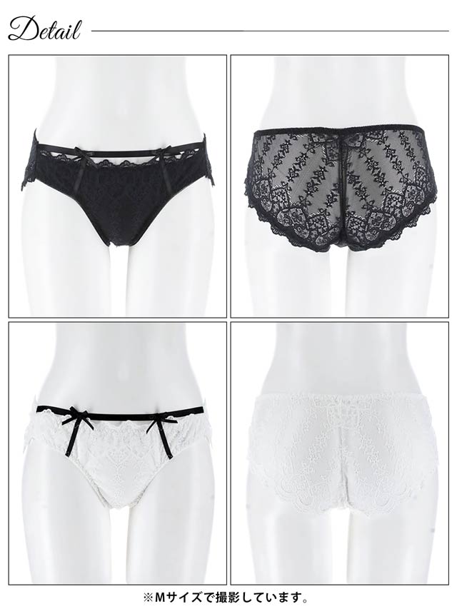 オールレースカットストリング育乳脇高ブラジャー&バック透けフルバックショーツ