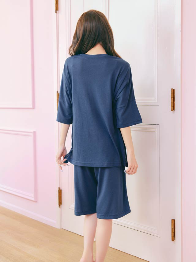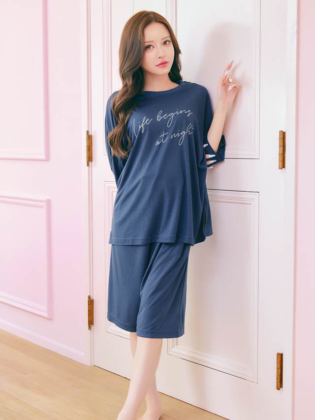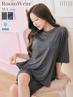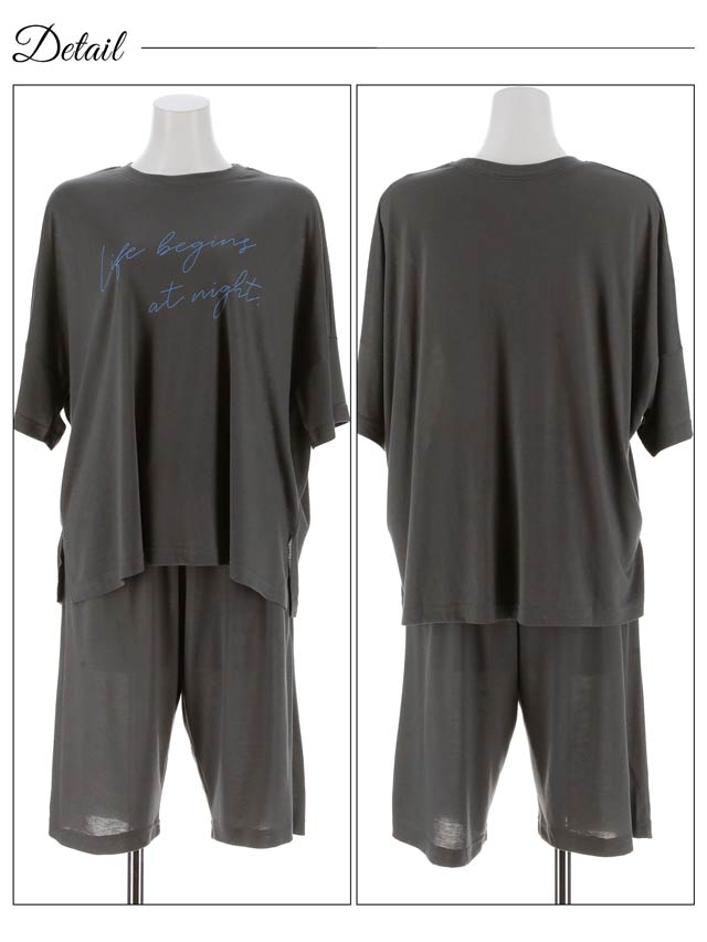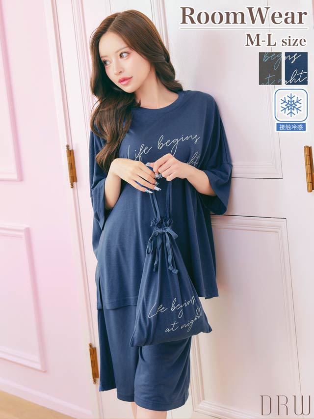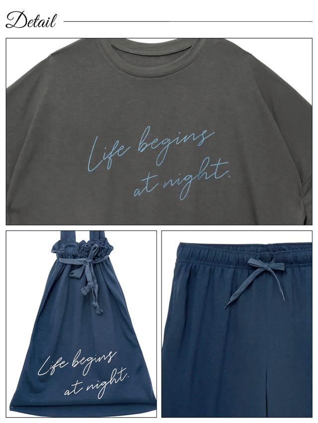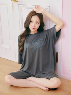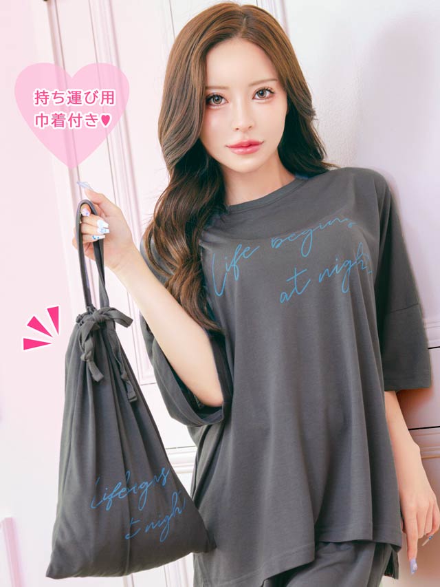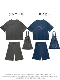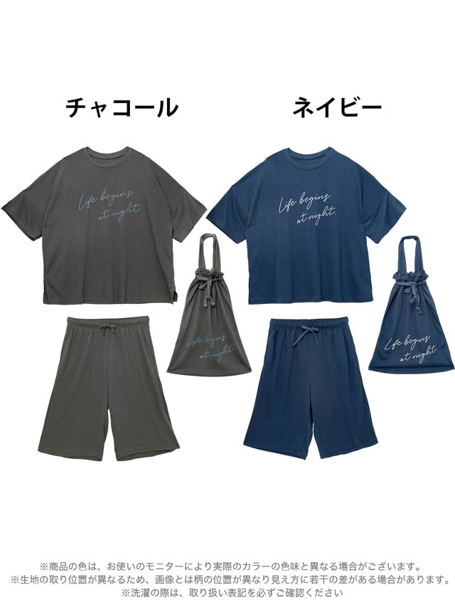 巾着付き五分袖ロゴトップス&ハーフパンツルームウェア