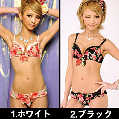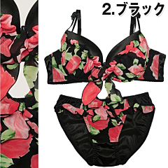 胸いっぱいにひろがるROSE柄が上品に♪シフォン生地のフリルで胸元を可愛く(●´ω`●)☆センターには存在感のある大きいリボン付き♪ストラップにはCUTEなミニリボン付きでその下からは2重になっているので脇肉を一気に寄せて上げられる優秀ブラ☆ショーツも同じROSE柄シフォンでセンターにはリボン♪サイドにかけてひらひらのフリルがCUTEに演出☆ブラもショーツも後ろはサテン素材なのでスッキリしたバックスタイルにッ♪パッドは超厚い内蔵パッドなので綺麗な谷間の完成!!高級感抜群の上品オーラを放出させてッヽ(*゜∀゜*)ノ!!