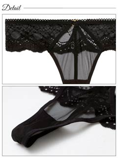 オールレースカットストリング育乳脇高ブラジャー&バック透けフルバックショーツ