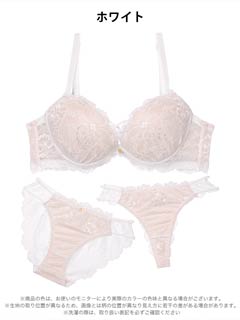 1/16再販!【あみち。プロデュース】【3点セット】スウィートフルール育乳脇高ブラジャー&フルバック&Tバックショーツ