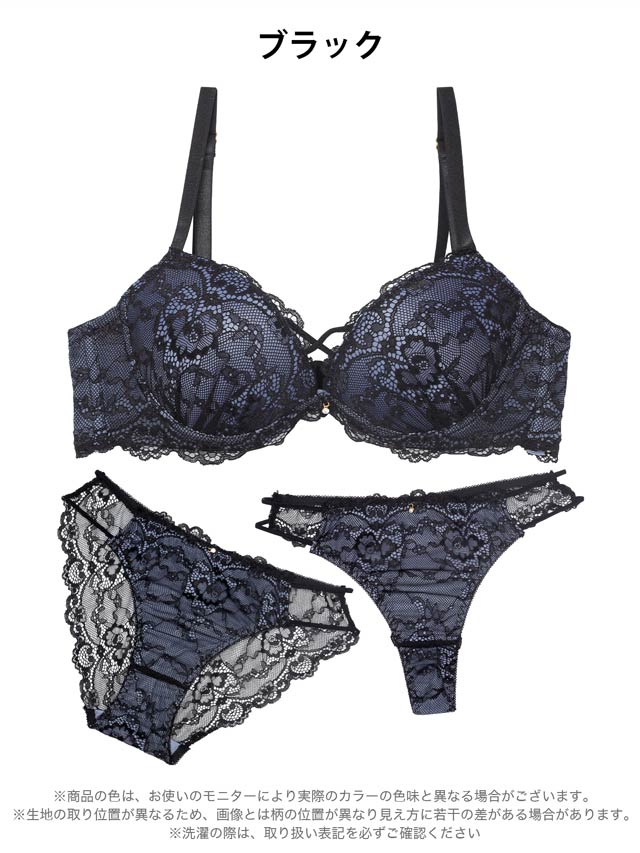 1/14新作!【3点セット】ジュエルレーシィコード育乳脇高ブラジャー&バック透けフルバック&Tバックショーツ[大人気]