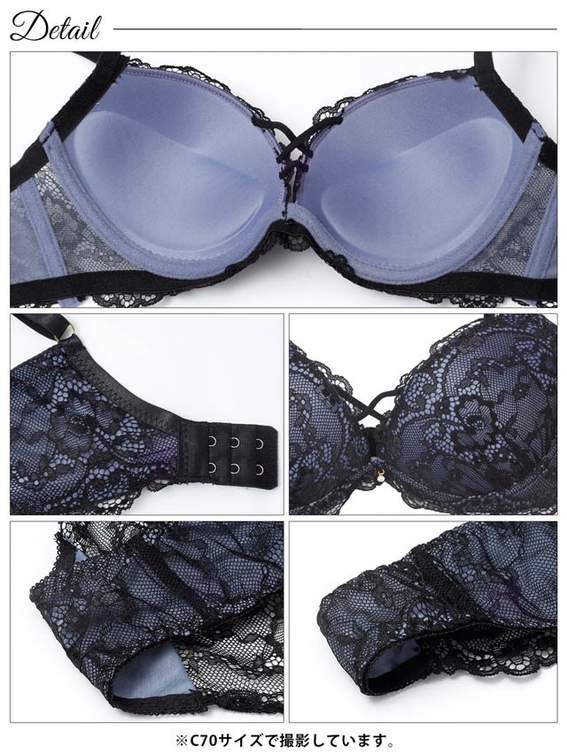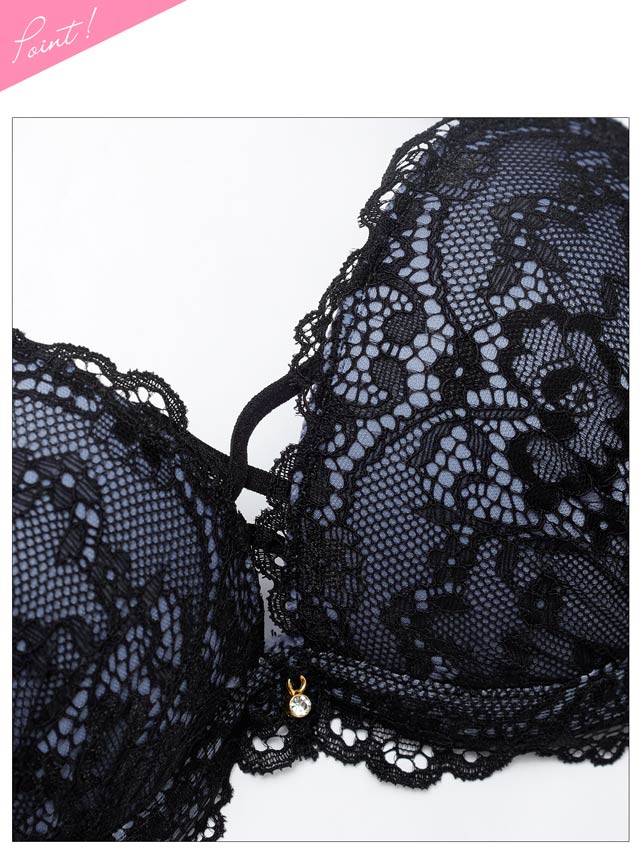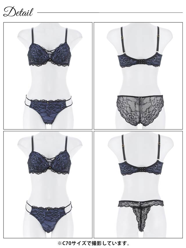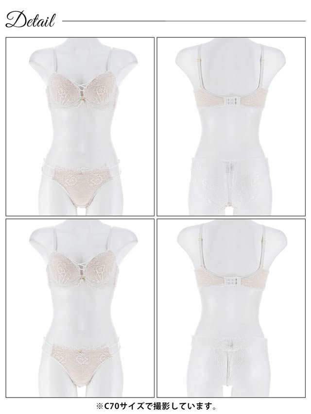 オールレースカットストリング育乳脇高ブラジャー&バック透けフルバックショーツ