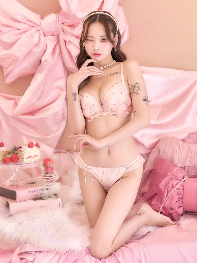 1/16新作!ミルキーリボンフリルブラジャー&フルバックショーツ